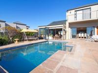 This beautifully designed and solidly built family home captures the full splendour of Noordhoek’s Long Beach and the iconic Chapman’s Peak, set within the secure and highly sought-after Stonehaven Estate. The lower level offers seamless indoor-outdoor living with stacking aluminium doors opening to the sparkling pool and landscaped garden. Three open-plan living areas include an enclosed sunroom and an indoor braai for year-round entertaining, while the open-plan kitchen with scullery forms a welcoming hub for family gatherings. A generously sized downstairs bedroom and bathroom provide ideal guest accommodation.