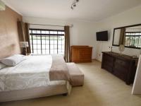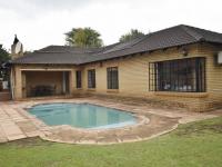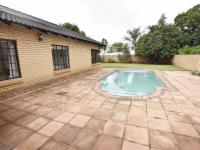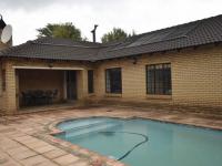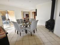 The spacious lounge and dining room flow effortlessly to a covered patio with a built-in braai overlooking a beautifully maintained garden and swimming pool—perfect for relaxed outdoor living and entertaining guests.