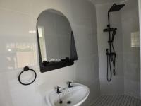 An en-suite bathroom consists of a shower, basin & toilet