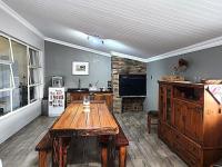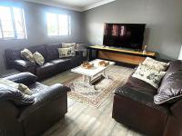 Upon entry, residents are greeted by an inviting entrance hall that transitions into an expansive open-plan living area. This thoughtfully designed space encompasses a lounge, a dedicated dining room, and a family/TV room, providing versatile zones for relaxation and entertainment. with built in braai. The interior is further enhanced by air conditioning in the main main bedroom, ensuring optimal climate control, and features sliding doors that facilitate seamless indoor-outdoor flow. The property includes a well-appointed kitchen and a practical laundry area.