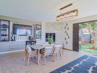 The home features two spacious lounges, a dedicated cinema room, and a patio dining area with a built-in gas braai. Stacker doors open seamlessly onto the pool area, creating the perfect indoor-outdoor flow for entertaining while enjoying panoramic views. A charming boma further enhances the outdoor experience, ideal for evenings around the fire.