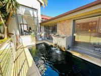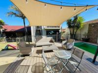 Embrace the quintessential South African outdoor lifestyle with an expansive patio, complete with durable composite decking, elegant sun sails for shaded comfort, and ambient string lighting for enchanting evenings. The private swimming pool, featuring a serene waterfall, transforms the garden into a personal resort oasis, ideal for relaxation or entertaining guests. The property is further secured by a robust perimeter wall and secure access.