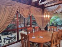 At the heart of the home is a spacious kitchen with an integrated dining area, opening seamlessly onto a covered outdoor entertainment space—ideal for family gatherings and relaxed entertaining. The lush, established garden surrounds the home, offering privacy, tranquility, and a true sense of permanence.
