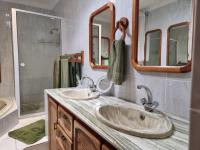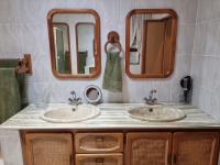 Practical features abound, including four garages, with the double garage on the house offering a workshop area and a cleverly concealed basement storage space. Automated garage doors allow direct, weather-safe access into the home. A domestic quarter with a bath, basin, and toilet adds further versatility.