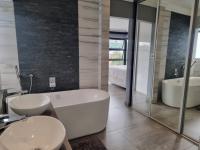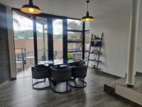 Come home to a double garage with internal staircase access that brings ease and security every day. The first-floor level opens into an expansive open-plan living space where the dining area, lounge and gourmet kitchen flow effortlessly. With three access points to outdoor living, you’re connected to the environment in every direction — whether enjoying sunrise coffee on the triangular balcony, hosting friends at the patio with built-in braai, or stepping through the laundry/scullery to the same entertaining area.