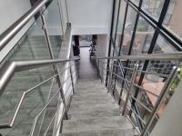 A sleek internal staircase takes you to the second floor, where two elegant bedrooms await. The master suite impresses with its own feature balcony and full en-suite bathroom, while the second bedroom enjoys easy access to a stylish bathroom with bath, a basin and toilet. Glass-fronted doors and windows flood the home with natural light, enhancing the sense of space and framing stunning views over the surrounding suburb.