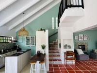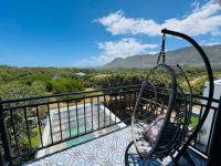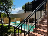 New release, Exclusive Sole Mandate: Beautiful, spacious mediterranean style home situated in sought after Sandbaai's golden mile. Great address, short walk to Sandbaai beach as well as the Blue Flag Onrus beach. This 5 bedroom home consists of 4 bedrooms in the main house with the main bedroom, en suite, on the 3 rd level with patio and beautiful mountain views. Open plan kitchen, dining room & lounge leading onto a patio with build in braai and a pizza oven. The ground floor level consists of a spacious one bedroom apartment with lounge and a fully equipped kitchen & own entrance.