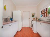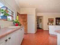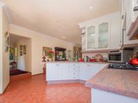 The kitchen is a chef's delight, featuring a gas hob and Thermofan oven. It includes a walk-in pantry cupboard and a separate scullery area with room for three under-counter appliances. The kitchen seamlessly flows into the dining area, which opens onto a covered patio complete with a built-in gas braai—ideal for al fresco dining and entertaining.