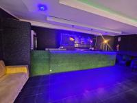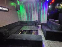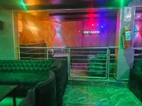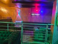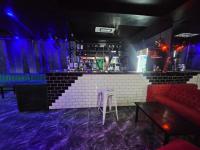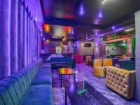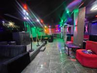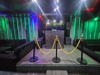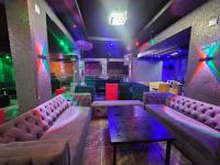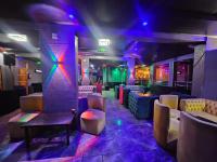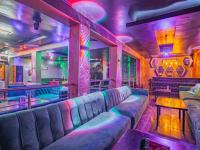 Step inside to discover an immersive environment meticulously designed for lively social gatherings. The expansive interior boasts multiple fully equipped bar facilities showcasing extensive liquor displays and modern geometric shelving. Dynamic multi coloured LED lighting bathes the space in an energetic glow complementing the plush varied seating arrangements from comfortable velvet sofas to stylish bar stools. A dedicated DJ booth complete with professional equipment anchors the entertainment ensuring an electrifying atmosphere for patrons.