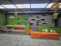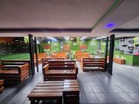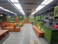Beyond the captivating interior an inviting semi outdoor lounge area provides a rustic chic retreat featuring covered seating, artificial greenery and ambient lighting – perfect for relaxed enjoyment. The property's distinctive blue facade and prominent branding ensure high visibility. Practical considerations include two well appointed bathrooms and a generous provision of ten dedicated parking bays enhancing accessibility for guests.