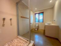 The spacious kitchen is thoughtfully designed with a gas hob, electric oven, and ample room for a central breakfast table. A private scullery has space for 3 appliances, and keeps the area neat and functional, while the kitchen flows effortlessly into the enclosed entertainment area. Here, you’ll find a built-in braai and built in bar, with stacking doors opening onto the manicured garden, open patio, sparkling swimming pool, and an intimate boma area.