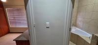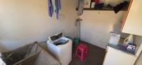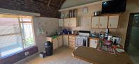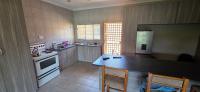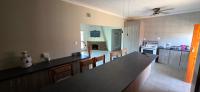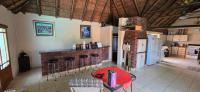 Has a kitchen with built-in cupboards and space for fridges and electrical appliances.