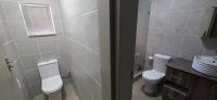 There is also a guest bathroom with a washbasin and a toilet.