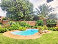 Step outside to a private oasis featuring a very clean and sparkling swimming pool and a spacious lapa with a built-in braai, ideal for outdoor entertaining and relaxation. The garden offers a serene backdrop, complemented by paved areas,mature trees, and healthy [hidden];