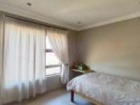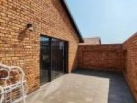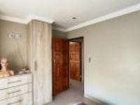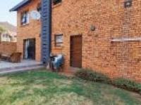 Step inside to discover a spacious open plan layout seamlessly connecting the lounge, dining room and kitchen. The contemporary kitchen boasts wooden cabinetry and a practical breakfast bar. Neutral wall tones, tiled flooring, crown molding and recessed lighting create a modern aesthetic throughout complemented by a dedicated family TV room. The home comprises three comfortable bedrooms and two well appointed bathrooms, including one onsuite offering convenience and privacy. Outdoor living is catered for with a private garden and a patio perfect for relaxation. A paved driveway and double garage provide secure parking while visible security gates on sliding doors enhance peace of mind.