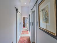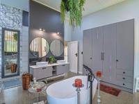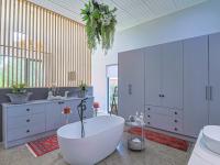 This home, situated in the lovely Landsmeer Equestrian Estate, reflects design and easy flow, textures and light, open plan living at its best. The home offers a large open plan living area which opens onto a veranda overlooking natural bush, separate scullery and laundry, practical store off the double garage, a study, three bedrooms, 3 bathrooms ( 2 en-suite). Entering the property, a classic courtyard greets one, before entering the home through the entrance hall. The double volume ceiling gives extra visual space. A wood burning stove takes the chill out of winter evenings. The bathrooms are a delight all on their own. A strong borehole and powerful solar system are extremely useful value adds. Words like peaceful, luxury and easy living all describe this modern day masterpiece. Phone me for a private viewing.