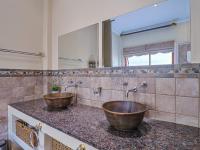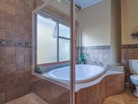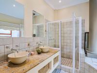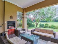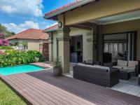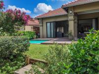 This residence offers three comfortable bedrooms and three bathrooms, including two private ensuites and a guest toilet. Step outside to a private swimming pool with a wooden deck, a covered patio featuring a built-in braai, and a lush, irrigated garden. Practicality is key, with a double garage, laundry room, and wheelchair-friendly design. The property benefits from 24-hour estate security and includes a battery inverter for power backup, ensuring peace of mind. Pets are also welcome, making this an ideal family home.