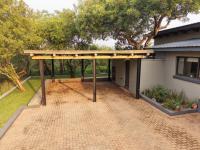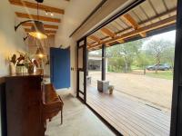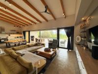 The home features three spacious en-suite bedrooms, all with exposed trusses, including a private master suite with outdoor shower. The open-plan living, dining and kitchen area flows effortlessly onto a covered patio, sun deck and pool, ideal for relaxed bushveld living and entertaining.