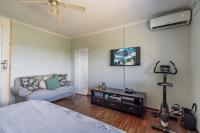 The modern gourmet kitchen is a dream, featuring sleek quartz stone countertops, plenty of cupboard space, and plumbed for your washing machine. The kitchen flows into the dining area and generous double lounge, fitted with an air-con unit, perfect for relaxed family evenings.