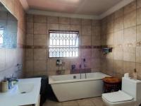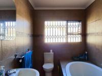 Accommodation comprises four well-proportioned bedrooms and two bathrooms, including a convenient ensuite bathroom. The property also features two garages and two additional parking spaces, catering to vehicle needs. Outdoor amenities include a garden and practical paving. Security is a key consideration, with security bars on windows and sliding security gates providing peace of mind.