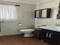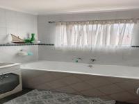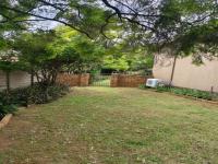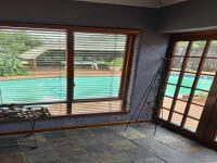 Outdoor living is a highlight, featuring a private swimming pool surrounded by brick paving, perfect for warm Boksburg days. A thatched lapa offers an ideal spot for outdoor entertaining and relaxation. The expansive garden, with its mature trees and neatly edged beds, provides a serene environment for pets and outdoor activities. The property also benefits from paving around the exterior.