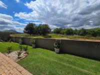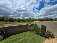 The modern L-shaped kitchen offers light wood-grain cabinetry, dark countertops, a subway tile backsplash, and a pantry, flowing seamlessly into the dining and lounge areas with large windows and sliding doors. Outdoor living is enhanced by a covered patio with a built-in braai and a private irrigated garden. Additional features include a single garage, extra parking, fibre connectivity, 24-hour security, pet-friendly living, and wheelchair accessibility—perfectly complementing the relaxed country lifestyle Leloko is known [hidden];