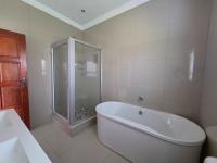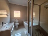 The property features three spacious bedrooms, all fitted with built-in cupboards. The main bedroom includes a full en-suite bathroom, while two additional bathrooms service the rest of the home, offering convenience for family and guests.