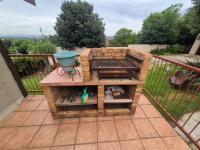 Adding significant versatility, a separate flatlet provides a combined living and kitchenette area, perfect for extended family, guests, or potential rental income. Parking is abundant with two garages and space for an additional six vehicles. The property also boasts a built-in bar for entertaining. Enhanced security features include a perimeter fence, access gate, and burglar bars, ensuring peace of mind. Fibre connectivity is available, and pets are welcome.