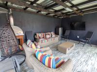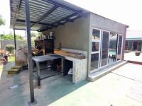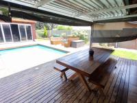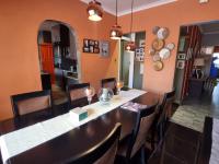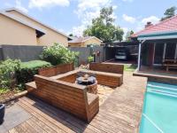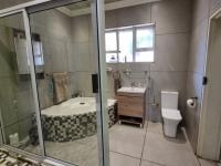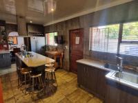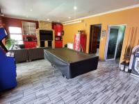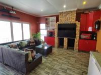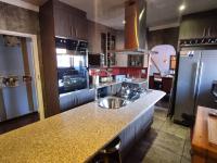 The home welcomes you with an entrance hall leading into a large open-plan lounge with fireplace, flowing seamlessly into a family and entertainment area complete with a built-in braai. A separate dining room sits alongside a modern, state-of-the-art kitchen featuring granite tops, center island with gas hob, breakfast nook, ample cabinetry and quality appliances.