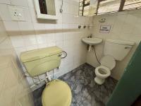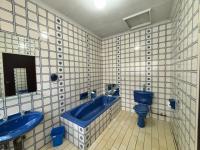Bathroom with toilet, shower, and wash basin (tiled floors)