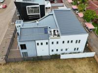 The ground floor is accessed via a 23m² paved entrance porch finished with interlocking pavers, leading into a thoughtfully designed workspace. This level comprises a 58m² open-plan office, an 11m² consultant’s office, a secure 11m² office, and an additional 45m² open-plan office. The layout is supported by a 19m² dedicated server room, a modern kitchenette, and separate male and female ablution facilities with tiled floors and upmarket finishes.