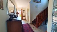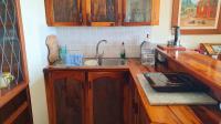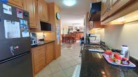 The modern kitchen is fitted with granite countertops, custom wooden cabinetry, a gas hob, electric oven, and an integrated indoor braai that links the kitchen and dining area. Plumbing is in place for a dishwasher.
