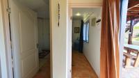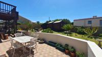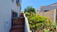 A private, air-conditioned bachelor flat offers sea views, kitchen cupboards with basin, and an en-suite bathroom with shower, toilet, and basin. The space comfortably accommodates a double bed, lounge area, and small dining table. Sliding doors open onto a paved patio — perfect for guests or rental income.