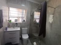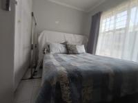Discover this inviting four bedroom residence nestled in the suburban heart of The Hill, Johannesburg. This charming home immediately impresses with its modern dark blue grey exterior contrasting white trim and a well maintained tiled roof presenting excellent curb appeal. A decorative front patio with white balustrades welcomes you complemented by a landscaped front garden and an established tree providing natural shade.