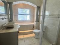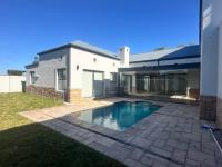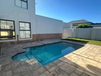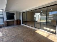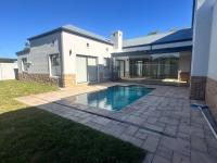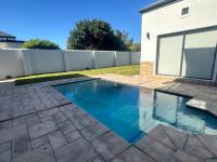 The living areas off the kitchen is lovely and open plan. The kitchen is spacious with lots of built in cupboards as well as a separate scullery. Space for a double door fridge. The leads to the indoor braai room that has stack away doors to the outside pool and garden. The garden is North Facing and wind-free.
