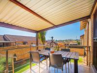Step through the lounge to a covered patio, an ideal spot for unwinding or entertaining friends and family. The garden is both charming and functional, wrapping around the townhouse, and the complex is petfriendly with [hidden];