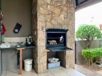 The open-plan kitchen, lounge, and dining area create a seamless flow, perfect for modern living and entertaining. Sliding doors lead out to a patio with a built in braai and a spacious, well-kept garden, ideal for pets, kids, or relaxed outdoor living.