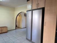The functional kitchen is equipped with ample cabinet and counter space, a built-in oven, gas hob, and a double sink, catering to all culinary needs. A large stainless steel refrigerator is also included. This residence comprises three well-proportioned bedrooms and two bathrooms, offering comfortable accommodation for the family.