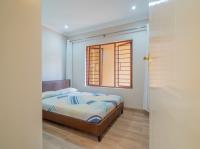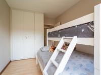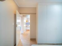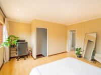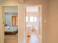 The upstairs bedroom is also wonderfully spacious and bright. It enjoys a full ensuite bathroom, study nook, built-in cupboards and a sunny, private balcony overlooking the gardens.