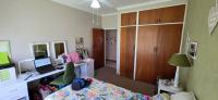 Main bedroom with carpet flooring, built-in cupboards, ceiling fan, and blinds