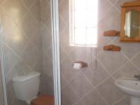 Accommodation comprises three comfortable bedrooms, each designed with practicality in mind. The master bedroom includes an en-suite bathroom, providing a private retreat. A second well-appointed bathroom serves the remaining bedrooms and guests. All rooms feature tiled flooring, neutral walls, and built-in wardrobes offering essential storage. Natural light and security bars are consistent features across the bedrooms, ensuring a secure living environment.