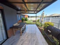 Discover this contemporary single story home situated in a secure estate within the suburban area of Albertsdal, Alberton. The property presents a modern aesthetic with its stylish grey and brick facade, complemented by a covered entrance and a durable tiled roof. While the front garden awaits your personal landscaping touch, the exterior promises excellent kerb appeal.