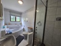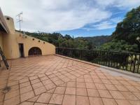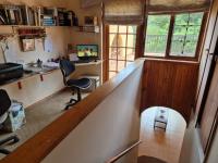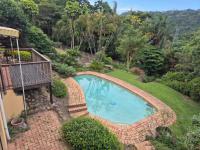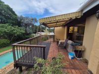 The upper level features two bedrooms and a separate study, all opening onto a huge tiled balcony with lovely views over the pool and garden. On this upper level you will find two bathrooms, one being an en suite. From the study, a staircase leads down to an additional lounge that opens directly into the garden, where you’ll find two more bedrooms and a full bathroom with both shower and tub. This lower level can easily be utilised as a separate flatlet, ideal for extended family, guests or rental potential.