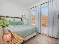 This townhouse offers two well-appointed bedrooms, ensuring restful nights and privacy. The main bedroom boasts an en-suite bathroom and a door that opens directly to the garden, providing a private retreat. The rest of the home is serviced by a stylish family bathroom.