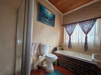 The main house features four spacious bedrooms. The main bedroom boasts a private en-suite bathroom, while two additional bedrooms share a convenient en-suite bathroom positioned between them. A guest toilet adds extra comfort for visitors.