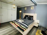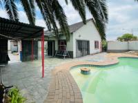 Externally, the property benefits from its expansive erf, offering considerable outdoor space. A notable feature is the private swimming pool, providing an ideal setting for leisure and recreation. The inclusion of a single garage offers secure parking and additional storage. Furthermore, the property is pet-friendly, catering to families with animal companions.