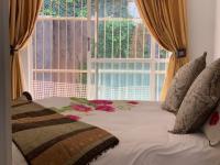 The complex offers a fenced swimming pool and a charming thatch-roofed lapa, offered perfect for entertaining or enjoying sunny South African days. The property also boasts a garden and a scenic view, creating a tranquil environment. Parking is well-catered for with a single garage and an additional parking space. Pets are allowed, making it ideal for animal lovers.