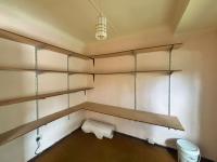 Bedroom 2: Queen-size bed, carpeted floors, fan, blinds, built-in cupboards