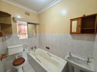 Bathroom 2: Toilet, bath, wash basin, tiled floors, blinds