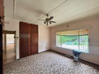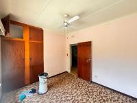 Bedroom 3: Double-size bed, carpeted floors, fan, blinds, built-in cupboards
